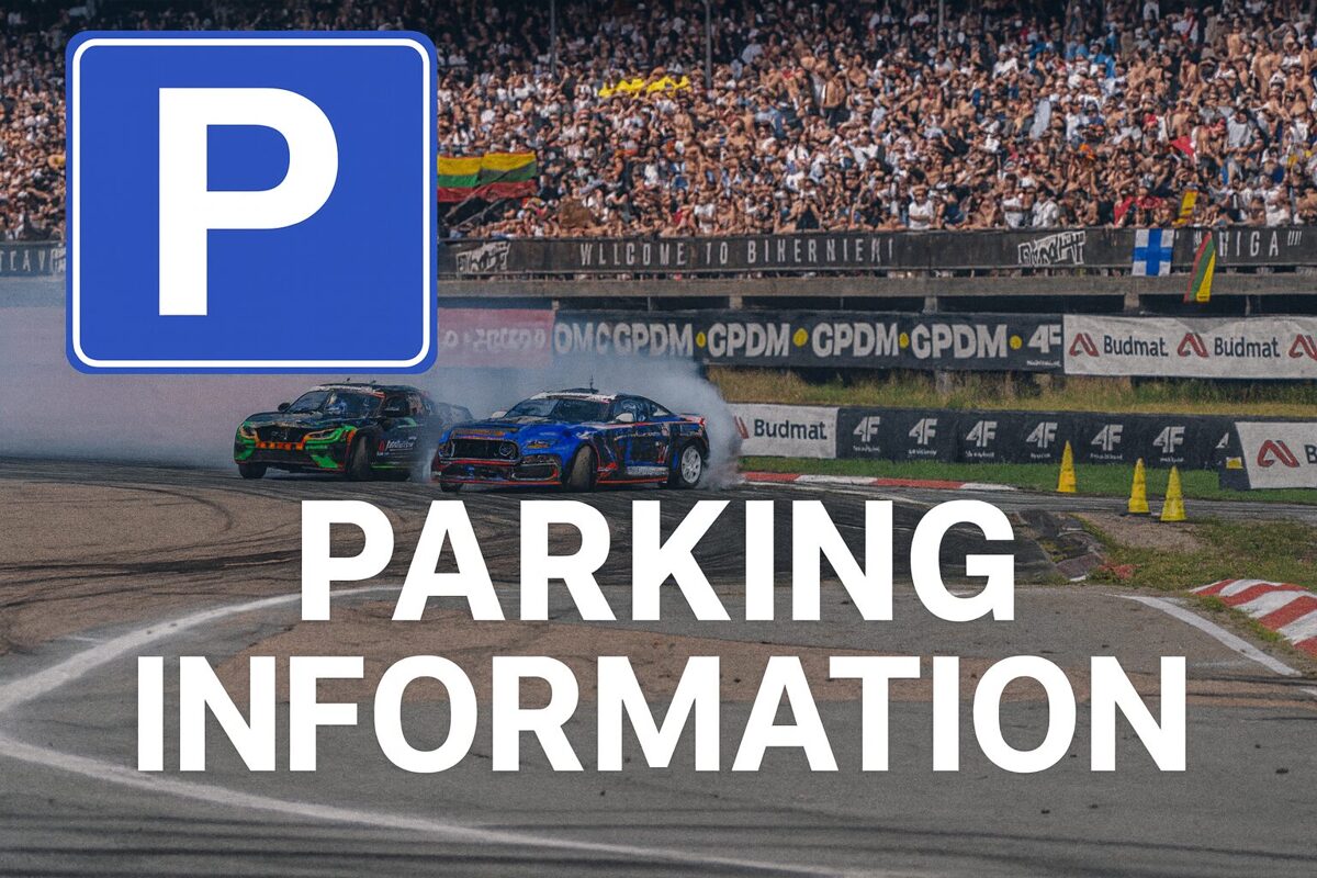 Sacensību laikā iespējams iegādāties auto caurlaidi pie Paddock ieejas.
